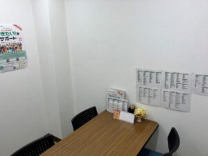 面談室は、落ち着いてお話が出来るスペース。就職に関しての「ご希望」「ご要望」を私たちにお話下さい。